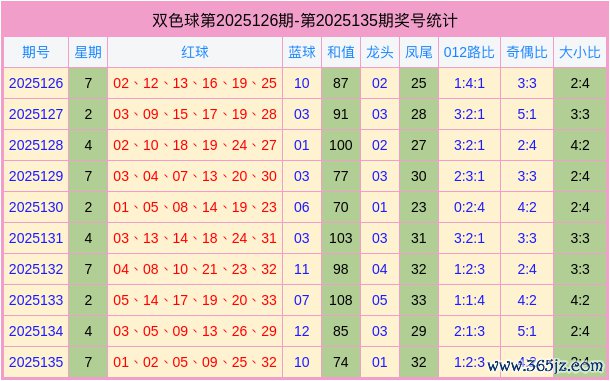 双色球2025135开奖号码为:01、02、05、09、25、32 + 10。